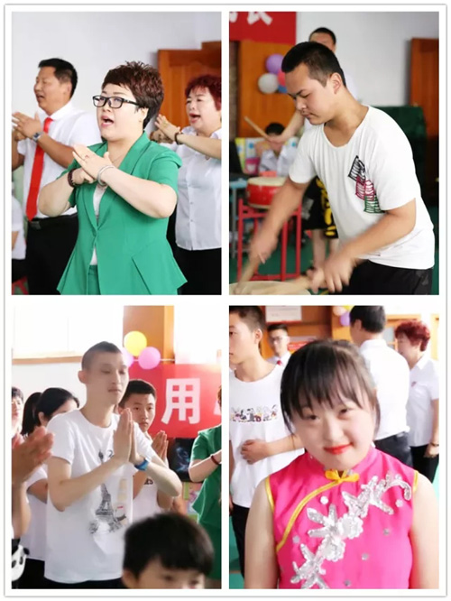 最后,爱诺学校的孩子和老师们为表示感谢,献上了《鼓》《星语心愿》《感恩的心》等精彩节目,这些参加演出的孩子们都患有先天智障或自闭症,其中也有被抛弃的孤儿。他们就像被折断了翅膀的天使,但他们用纯真的笑脸和饱满的热情诠释了感恩和快乐,孩子们的表演和老师们的辛苦付出感动了现场所有人,爱心在这个教室久久回荡。最后,权健志诚团队的家人们也为爱诺学校的全体师生奉献了舞蹈《万众一心》,活动在爱诺全体师生和权健家人共同演绎的手语舞《感恩的心》中圆满结束。