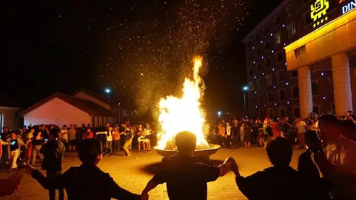 伴着生日祝福,新时代专场篝火晚会开始,大家围在篝火旁随着热烈的音乐拉手跳跃,翩翩起来,热闹非凡。