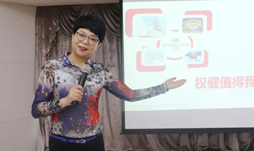 接下来,由权健江苏分公司经理陶厉蕴女士为家人们带来了《权健值得我们选择》的课程。通过陶经理充满正能量和感染力的分享,让大家清晰地认识到权健的价值与魅力,更看到权健的实力和未来。