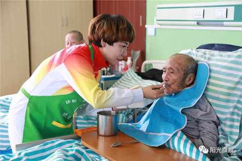 吴总亲自给不能自理老人喂起饭来,一口,两口……此刻的他们就像婴儿般渴望得到捧在手心里关怀,那幸福的笑脸,感动的泪水,看得心里说不出的滋味。