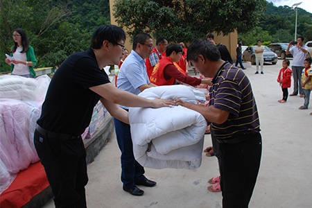 三生(中国)云南分公司为学生送去150套棉被,解决了龙丁小学学生住宿寝具不足、冬天没有厚被子盖的问题,温暖了该校留守儿童的心。三生(中国)云南分公司负责人表示,希望通过这次捐赠活动,改善龙丁小学学生生活条件,尽到一家企业该尽的社会责任。同时也希望同学们能够克服山区教育教学设施相对简陋的条件,勤奋刻苦学习,将来成为对社会有用的人。