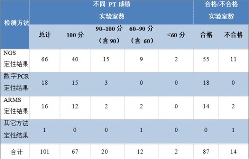 实验室定性检测PT成绩情况