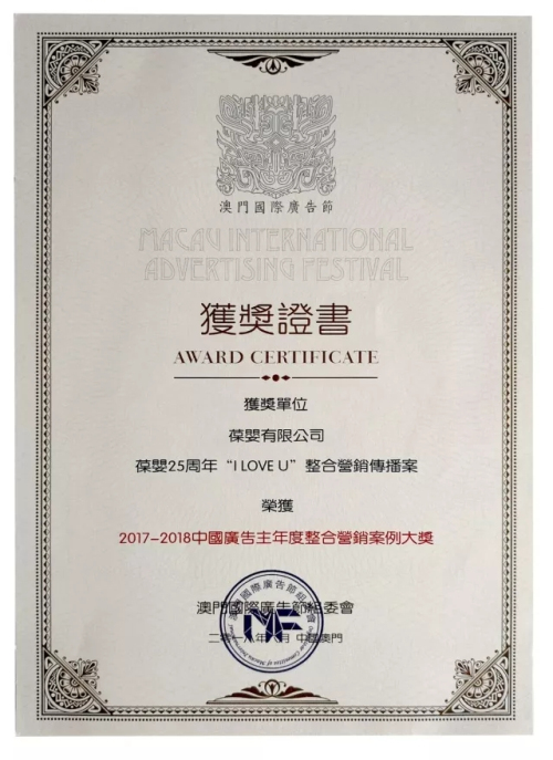 葆婴斩获澳门国际广告节整合营销案例大奖