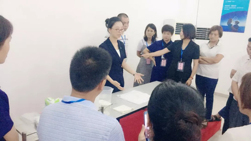 安然深圳分公司郇粟荣经理为伙伴们带来安然产品示范,用实验的方式来展示安然产品的纳米科技,伙伴们为了不错过每一个精彩的瞬间,纷纷起立近距离观赏。