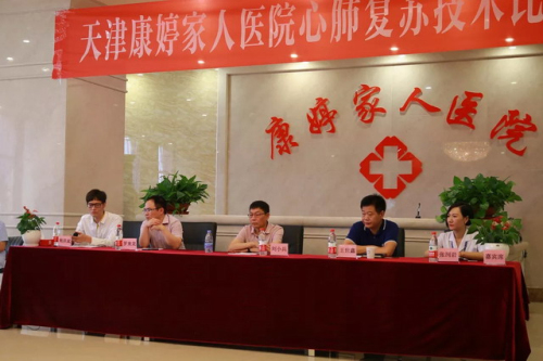 2018年7月18日,为检验大家的学习成果,康婷家人医院开展了心肺复苏技术比武活动,康婷公司董事长刘小兵先生、康汇医院院长王世鑫先生、信息与医学工程部部长罗来龙先生、家人医院院务部主任张润岩女士等领导出席了此次活动。同时,邀请了武警医院教授石莹女士、西青医院护理部主任徐庆贤女士作为比武活动评委嘉宾。此次比武活动由康婷家人医院医务部主任杨洪斌先生主持。