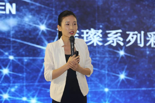 ▲隆力奇商学院高级讲师刘佩作新品介绍
