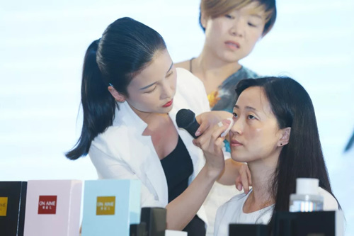 ▲刘佩老师作彩妆新品使用演示