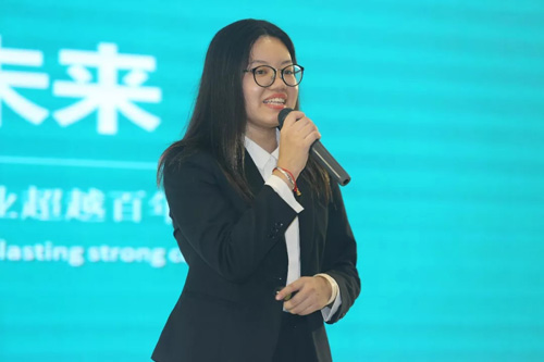 ▲隆力奇水生命科学研究院研究员余琳敏作水杯水机产品讲解