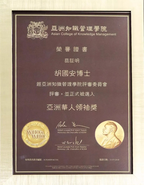 绿之韵胡国安董事长获林肯大学荣誉管理博士