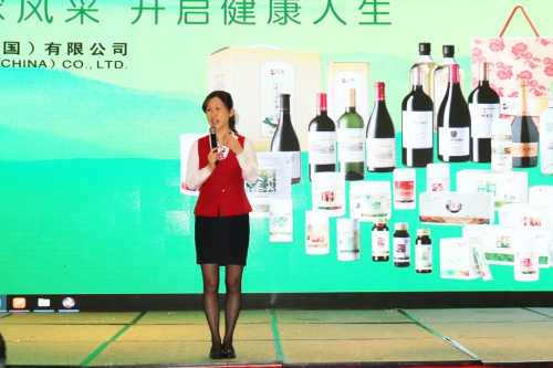 完美青岛分公司业务部主任孟春彦为会议致辞,她感谢总公司领导对山东市场一如既往的支持,欢迎各位总监、教授的到来。她期望这次活动能促使更多的人学习健康管理的专业知识,知行合一,从自己做起,更带动他人健康生活。