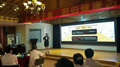 市场领导人徐春娜老师为伙伴们分享了《平衡与容颜》,现场的实验让所有与会伙伴对安然产品充满信心。