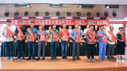 徐建成、李仙霖为民间英雄颁发“绿叶奖”奖金