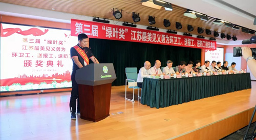绿叶科技集团董事长、江苏省见义勇为基金会副理事长徐建成致辞介绍了绿叶科技集团的良好发展态势,概述了绿基金长期捐赠全国见义勇为事业、贡献精准扶贫、抗震救灾、助残脱贫、资助贫困大学生、捐建绿叶小学等方面的社会贡献。并表示,能够通过捐赠省见义勇为基金会,成立“绿叶奖”,为见义勇为三工人员中的先进分子做出一些力所能及的贡献,绿叶深感荣幸。同时,为了见义勇为事业的大力发展,还将在未来持续捐赠,不断奉献!