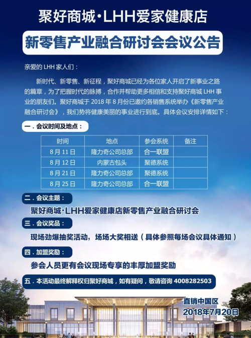隆力奇聚好商城将开展新零售产业融合研讨会