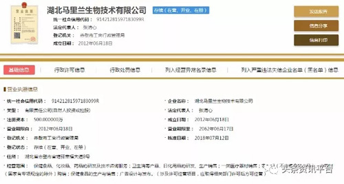 直销头条网编辑在国家企业信用信息公示系统查询到湖北马里兰生物成立于2012年06月18日,注册资金500万人民币(实缴资金300万人民币)。法人代表张清心,执行董事兼总经理张清心,监事李红,自然股东有李红、张清心。