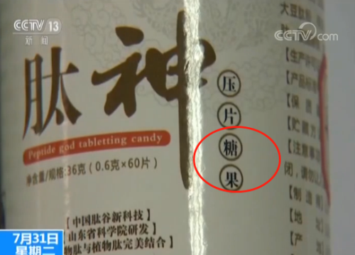 “钛神”是犯罪嫌疑人高价向老人推销的另一种保健品,标价是980元一瓶,总共60粒,在产品包装上,钛神两个字特别显眼,而旁边的压片糖果4个字明显字号小了很多,很不起眼。上海宝山公安机关委托第三方检测机构对这种保健品的成分进行了检验。