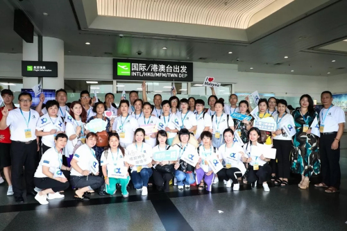 步入机场,家人们的注意力就被通道一侧醒目的“辉煌安发 环球旅行”大幅易拉宝吸引了,在听说此次大家前往马来西亚乘坐的飞机还是“‘辉煌安发 环球旅行’(马来西亚站)号”,而且机长还将特别向全体安发家人致辞问候时,在场的家人瞬间心里激荡着身为安发人的满满自豪感。