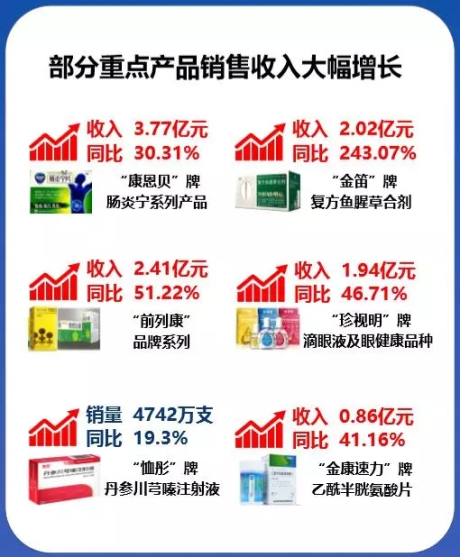 2018年上半年,公司以实现高质量基础上的高速发展为目标,继续以大品牌大品种工程为主线,切实完善激励体系,积极加强营销网络建设,继续保持了较好的发展势头。纳入大品牌大品种工程项目的系列品牌产品2018年上半年累计实现销售收入26.29亿元,较上年同期增长69.67%,其中:感冒药“金笛”牌复方鱼腥草合剂继续保持超高速增长,依托产品和品牌优势,再加上策略正确、执行到位,该产品在2017年实现销售收入1.78亿元同比增长140%的基础上,2018年上半年实现销售收入2.02亿元,比上年同期增长达到243.07%,为其成长为感冒药领域大品牌大品种奠定了基础。“康恩贝”牌肠炎宁系列、“前列康”牌普乐安及坦索罗辛系列和“珍视明”牌滴眼液及眼健康系列产品在2018年上半年销售收入分别达到3.77亿元、2.41亿元和1.94亿元,较去年同期分别增长30.31%、51.22%和46.71%。处方药方面,“康恩贝”牌麝香通心滴丸产品、“金康速力”牌乙酰半胱氨酸泡腾片等品牌产品销售收入同比均有40%以上增长;尤其是下属贵州拜特公司的“恤彤”牌丹参川芎嗪注射液产品,面对较不利的市场环境,通过近几年来持续不懈开发扩大基层、民营医院等市场,销量扭转了近二年来的下降态势并呈现企稳回升,2018年上半年实现销售数量4,742万支,同比增长19.30%,实现销售收入8.94亿元,同比增长200.48%(其中逐步执行“两票制”下的价格政策带来的销售收入增加额为5.47亿元,剔除该因素可比口径增长26.84%)。