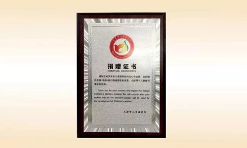 2018年 尚赫公司荣获-天津市儿童福利院捐赠证书