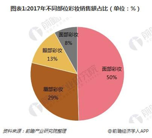 彩妆化妆品涉及到面部五官等多部分,前瞻产业研究院数据显示,2017年,国内彩妆市场中唇部彩妆销售额占比29%,成为第二大类彩妆消费品。