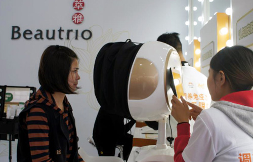 “养吧”活动还设有一座高颜值的萃雅“明星化妆间”,不容错过。那里内置便捷的皮肤状态体验设备,体验者只需要扫上“三眼”,即可洞察皮肤的年龄,解开你肌肤的小秘密,比如能了解到毛孔、皱纹、粗糙度、色斑等肌肤状态,让你在变美的路上少走弯路。