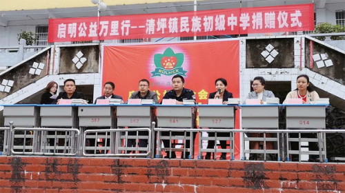 启明公益基金会湖北项目部代表吴丹,清坪镇人民政府副镇长秦华松,派出所副所长任德亮,清坪镇中心学校校长聂少华,民族初级中学校长汪峰带领学校部分师生,以及北京罗麦科技爱心经销商肖兵、刘国兰等众多爱心人士参加了捐赠仪式。