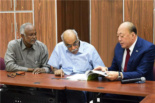 在会中,加西姆尤瑟夫校长向李金元董事长详细介绍阿法特女子大学的基本情况和发展沿革。阿法特女子大学自1966年成立以来始终坚持精英教育的办学理念,为苏丹培养了众多在政治与商业里具有高度影响力的女性精英。该校毕业生广泛分布在苏丹的各个省州,运用所学知识和技能为苏丹国家在消除贫穷、改善民众健康水平和促进经济社会发展等方面做出了积极贡献。