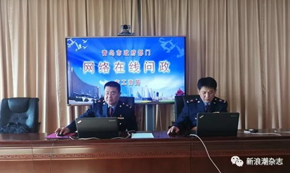 (11月1日,青岛市工商局直销监管处处长李涛(左)参加青岛政务网网络在线问政,与网友交流打传规直以及会销活动问题。)