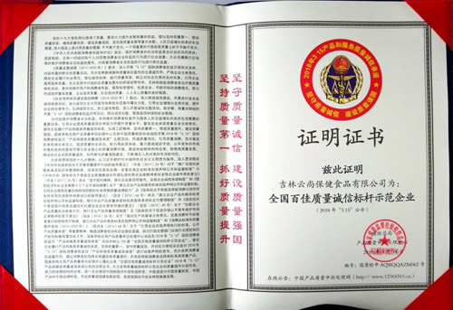 在2018年国家质检总局举办的“产品和服务质量诚信承诺”评选活动中,吉林云尚凭借着一贯优良出众的产品与服务质量,喜获“全国百佳质量诚信标杆示范企业”荣誉。