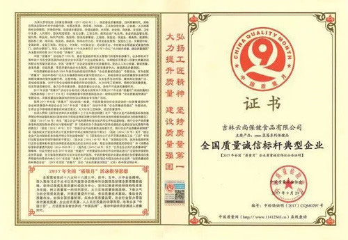 这已经不是吉林云尚第一次获得此类殊荣,在去年的评选中,吉林云尚同样获得了“全国质量诚信标杆典型企业”的称号。