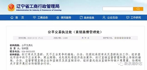 此前,辽宁省的直销管理工作由省工商行政管理局内设的公平交易执法处(直销监督管理处)负责。
