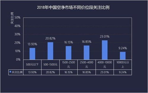 这也解释了为什么4000元-10000元的这一价格区间获得的关注最多,高达23.01%。在这价格段中的空净产品,不论是外观设计还是净化性能基本都能达到各品牌下旗舰级别,可见价格已经不再是大部分消费者选购空净产品的首要衡量标准,人们更为看重的是产品的功能、技术所带来的体验。消费者们对于优质产品、品质生活的追求正在逐步攀升。