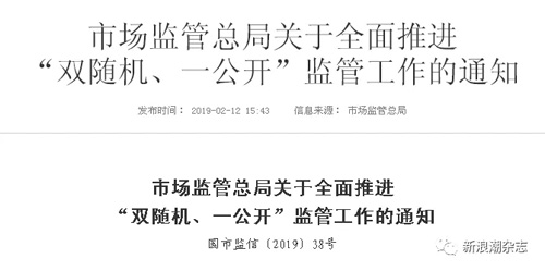 2月12日,国家市场监管总局印发《关于全面推进“双随机、一公开”监管工作的通知》(以下简称“通知”),同时发布了“市场监管总局随机抽查事项清单”。清单中就包括:直销行为检查包括重大变更、直销员报酬支付、信息报备和披露的情况的检查,依据是“《直销管理条例》、《直销企业信息报备、披露管理办法》”;保健食品销售监督检查则依据“《食品安全法》第一百零九条、第一百一十条、第一百一十三条、第一百一十四条;《食品生产经营日常监督检查管理办法》第九条”。