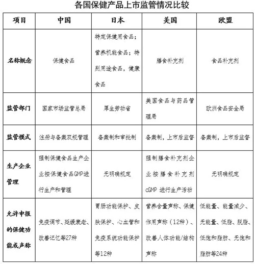 各国对保健产品上市的管理模式、注册程序、申报材料和允许申报的保健功能等要求各有不同,总的来说可以将保健产品上市监管模式分成两类:注册审批制和备案制。注册审批制指企业的产品在上市前需向注册管理部门进行申报并通过一系列审批后方可上市销售,对产品的安全性、含量标准、标签声明等上市前的材料要求比较严格。备案制指企业在产品上市前只需向相关部门提交注册备案资料,不需要经过相关部门审批过程即可上市销售。保健产品在各国申请上市时,还要注意各国对保健产品的重金属限量、杂质含量限制、化学品最大残留限量等的要求。