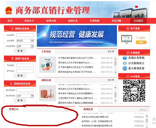 近日,商务部直销行业管理网站“受理公示”一栏的46家受理公示企业名单集体“下架”,目前“受理公示”一栏呈空白状态,点击“更多”按钮,也未有任何反应。
