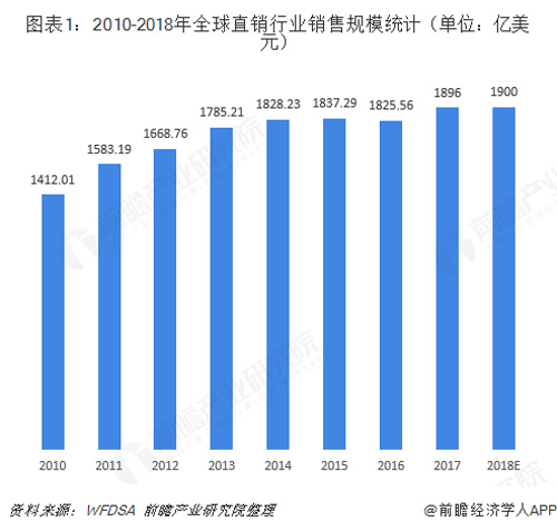图表1:2010-2018年全球直销行业销售规模统计(单位:亿美元)