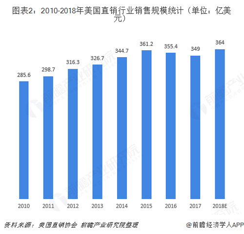 图表2:2010-2018年美国直销行业销售规模统计(单位:亿美元)