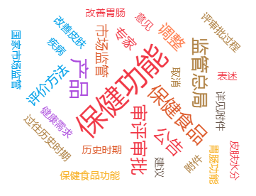 网民关注的词云图与媒体报道词云图类似,“保健功能”“审评审批”等热词提及率较高。此外,“改善胃肠”“改善皮肤”“胃肠功能”“皮肤水分”等热词的出现,体现了与消费者健康需求的密切相关性。
