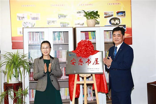 在现场热烈的掌声中,陆汉萍副董事长和曹昌贵副总经理一起为安惠书屋揭牌。