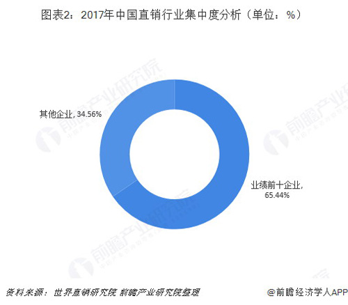 图表2:2017年中国直销行业集中度分析(单位:%)