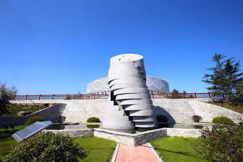 这个极具艺术与观赏性的雕塑远看像一个破土而出的竹笋,象征着生命的坚韧与顽强,象征着生机盎然;仔细看仿佛生命科学的双螺旋,又好似内生太极八卦图,将科技与道家思想融合,阐明了宇宙生命之法则,阐述了万物化生之源。