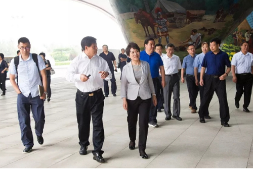夏延军副省长一行在金士国际葡萄酒庄总经理王高峰陪同下,参观了酿酒葡萄基地、精品葡萄酒酿造车间、世界葡萄酒文化壁画群、葡萄酒诗词壁刻群等,听取了酒庄经营情况的汇报。