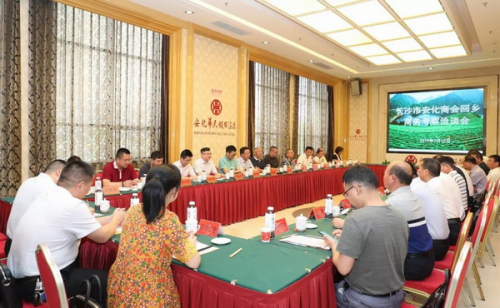 为进一步探索经济转型期和新的形势下促进家乡经济高质量发展的新方法、新形式,助推家乡精准扶贫产业脱贫,2019年7月9—10日,由长沙市安化商会安化籍知名企业家组成的考察团,回乡商务考察洽谈。中共安化县委书记刘勇会,县委副书记王新宇,县委常委、县委统战部部长刘化,县人大常委会副主任王良才,县人民政府副县长伍亮以及县商务局、工商联等部门负责人;湖南省工商联(总商会)副会长、长沙市安化商会会长、安化县工商联(总商会)名誉会长、绿之韵集团董事长胡国安携20余位安化籍企业家参加本次考察活动。