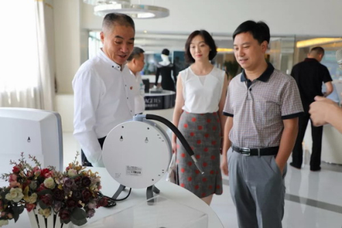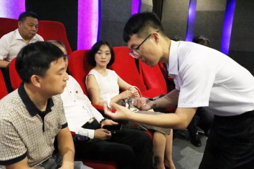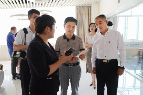 在环幕影院,刘兰设局长一行观看了董事长作词的《安然情•井冈行》《大道之行》等歌曲MV和企业文化宣传片,对安然公司企业文化建设表示肯定。观看了纳米布条产品实验后,刘兰设局长对安然公司的纳米技术产品的高品质性能表示赞赏。