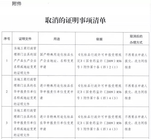 药品监督管理局:取消化妆品行业的3项证明