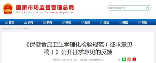 8月9日, 市场监督管理总局就《保健食品卫生学理化检验规范(征求意见稿)》的公开征求意见情况进行了反馈。