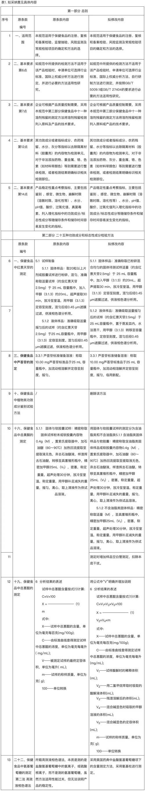 经过组织医学、药学、食品、营养等领域专家对截止到7月1日之前收集到的86条意见进行研究论证,拟采纳13条(具体内容见表1);拟不采纳9条(具体内容见表2)。最终意见还有待进一步研讨。