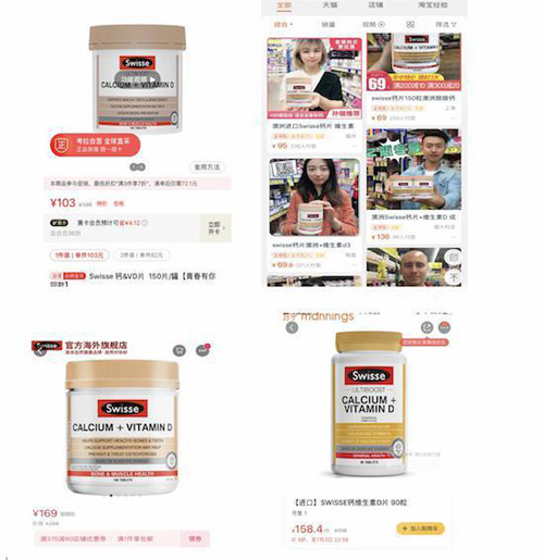 澳大利亚保健品品牌Swisse的一款钙片,淘宝上的代购价格从60余元到100-200元不等;天猫官方旗舰店售价169元;网易考拉自营标价103元;线下零售店万宁售卖的同款产品的小包装158元……价格区间较大,有两三倍之多。
