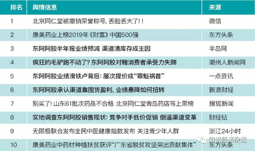 从舆情属性来看,最受关注的敏感舆情信息Top10(见图表6)中,多为东阿阿胶舆情,其他还有同仁堂、安然、哈药的舆情;排名第一的舆情,为同仁堂被撤销荣誉消息,这是2019年2月的新闻,却在7月再度成为舆情焦点。非敏感信息排名前十舆情(见图表7)中,主要为康美药业、东阿阿胶、无限极的舆情。