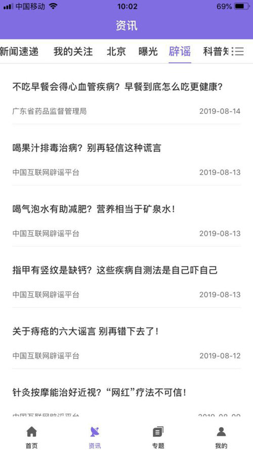 喝气泡水能否减肥、指甲竖纹是否缺钙、针灸按摩能否质量近视?这些问题在E药云搜APP中,市民都可以通过其科普知识和辟谣等栏目得到答案。不仅如此,市民还可以自己选择关注的疫苗、新药、化妆品处方药等领域新闻,在我的关注栏目查看最新消息等内容。